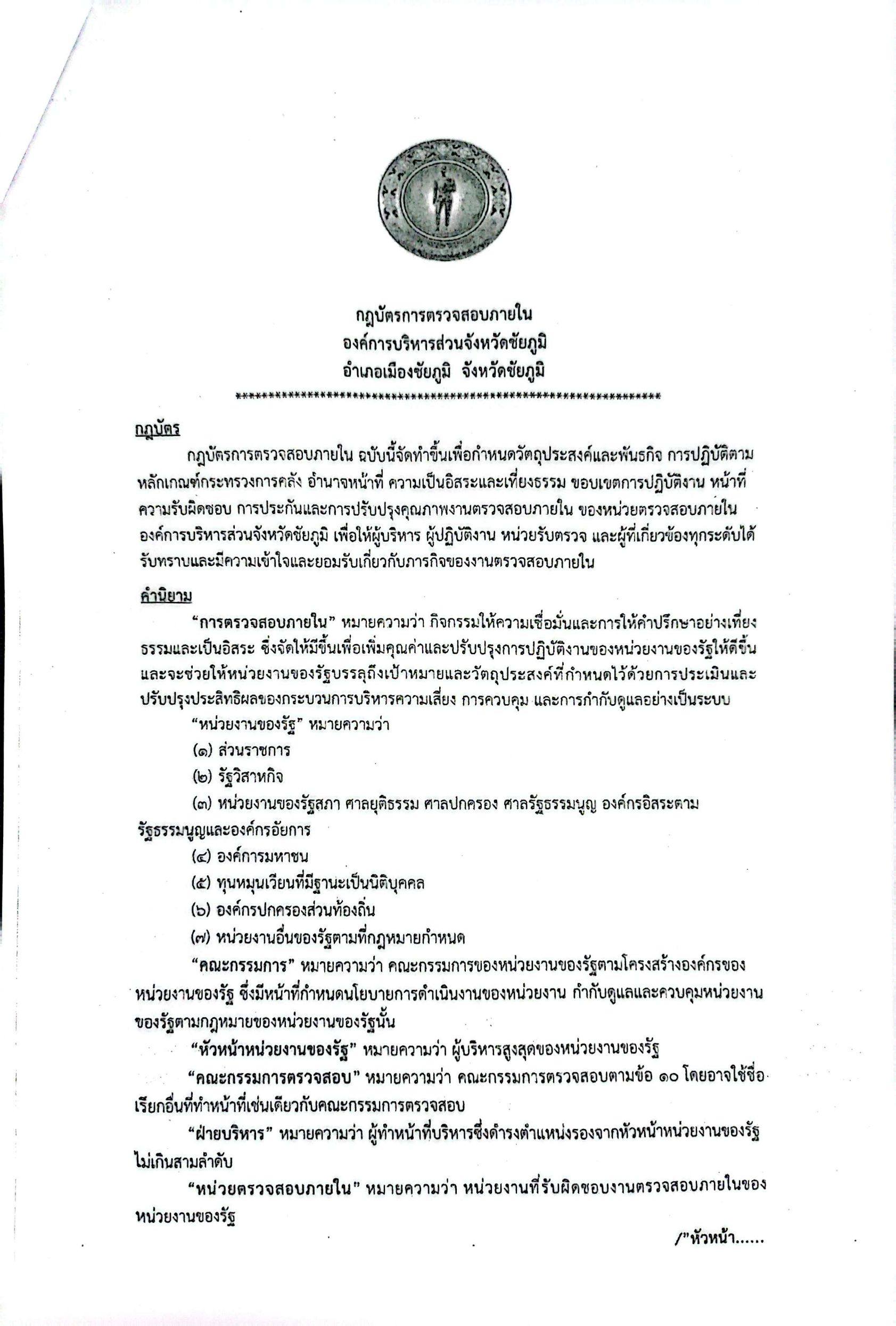 กฏบัตรการตรวจสอบภายใน องค์การบริหารส่วนจังหวัดชัยภูมิ