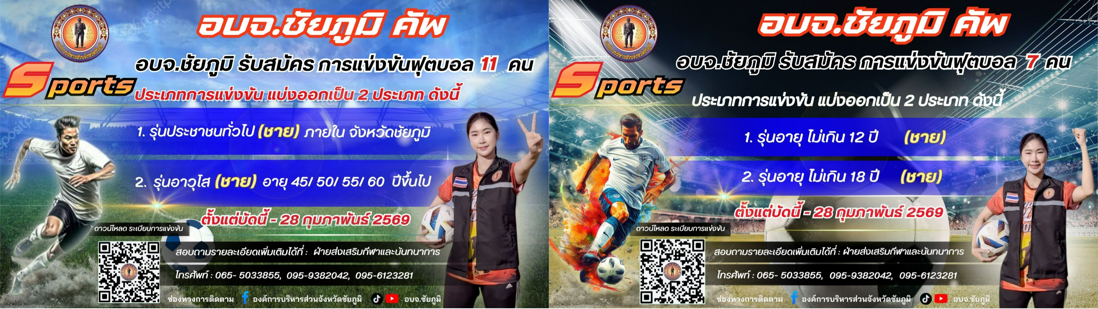 เปิดรับสมัครแล้ว ! การแข่งขันฟุตบอล อบจ.ชัยภูมิ คัพ เวทีแห่งศักดิ์ศรีของคนรักฟุตบอล จังหวัดชัยภูมิ มาร่วมประชันฝีเท้า สร้างมิตรภาพ และชิงความเป็นหนึ่งไปด้วยกัน